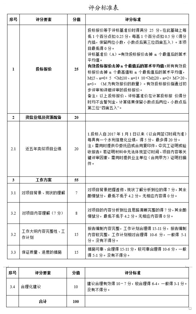 本項目在供應(yīng)商滿足資格要求的前提下依據(jù)業(yè)績、資信、報價等方面進(jìn)行綜合評選,詳見評分標(biāo)準(zhǔn)表。本項目最高限價為95萬元。