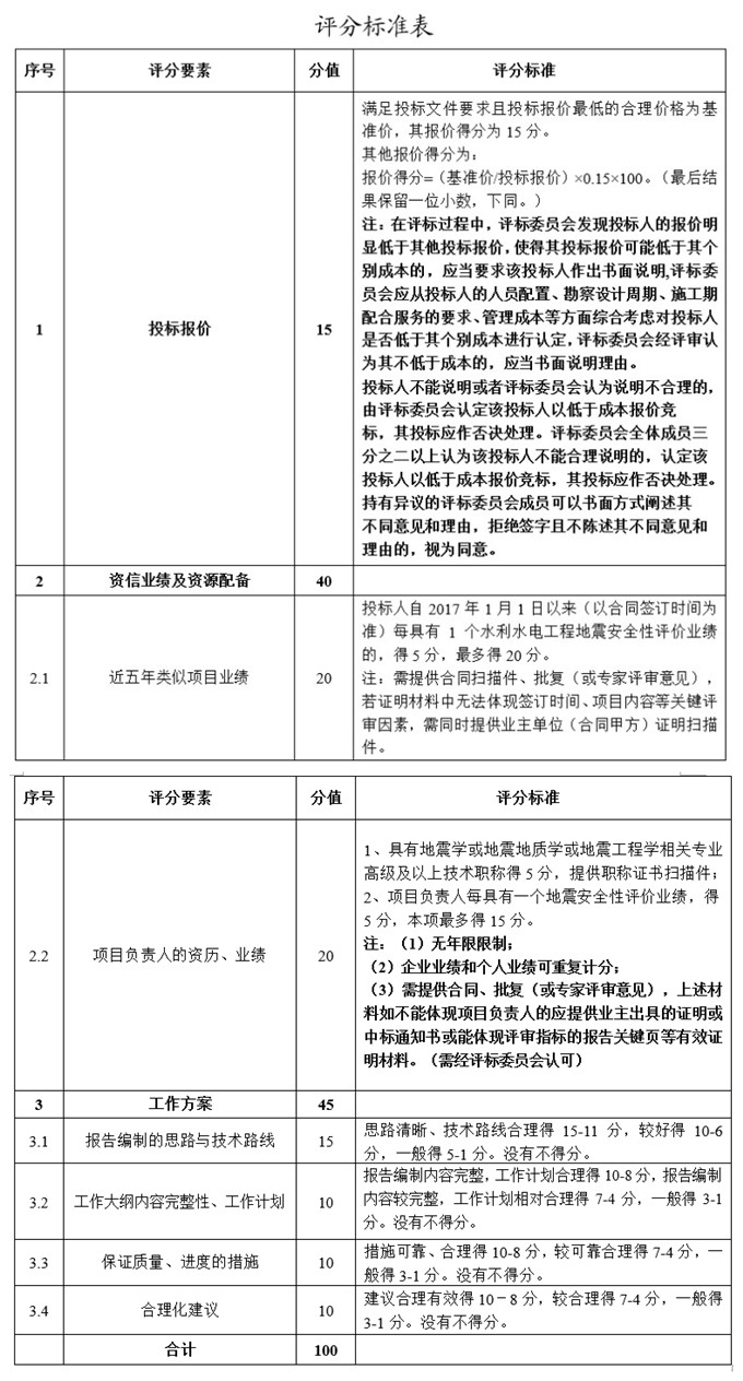 本項(xiàng)目在供應(yīng)商滿足資格要求的前提下依據(jù)業(yè)績(jī)、資信、報(bào)價(jià)等方面進(jìn)行綜合評(píng)選,詳見評(píng)分標(biāo)準(zhǔn)表。本項(xiàng)目最高限價(jià)為97萬元。