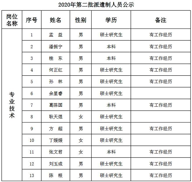根據(jù)公司2020年第二批派遣制人員招聘計(jì)劃,經(jīng)過(guò)報(bào)名、資格審查、面試、體檢等程序,孟益等13人(名單附后)由合肥中晟卓達(dá)人力資源管理有限公司簽訂勞動(dòng)合同派遣我公司工作?,F(xiàn)予公示。
