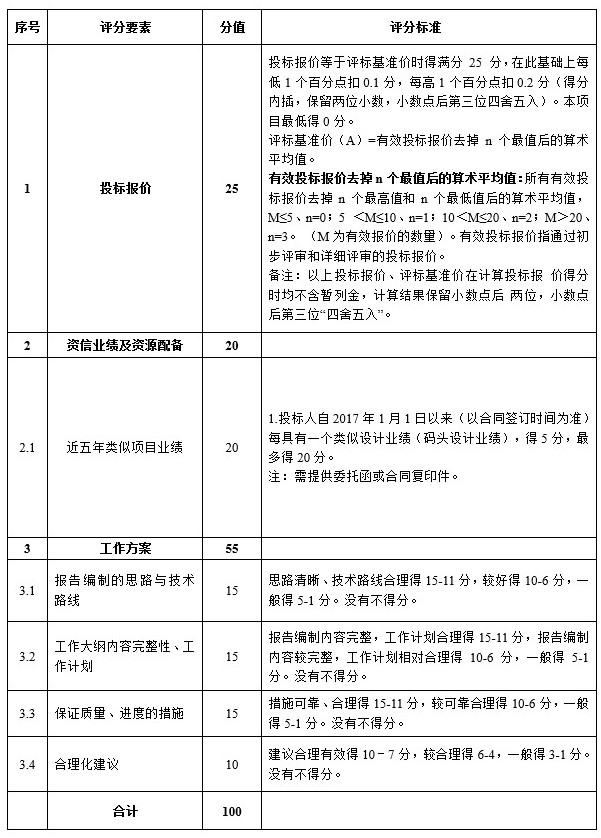 本項(xiàng)目在供應(yīng)商滿足資格要求的前提下依據(jù)業(yè)績(jī)、資信、報(bào)價(jià)等方面進(jìn)行綜合評(píng)選,詳見評(píng)分標(biāo)準(zhǔn)表。本項(xiàng)目最高限價(jià)為95萬(wàn)元。