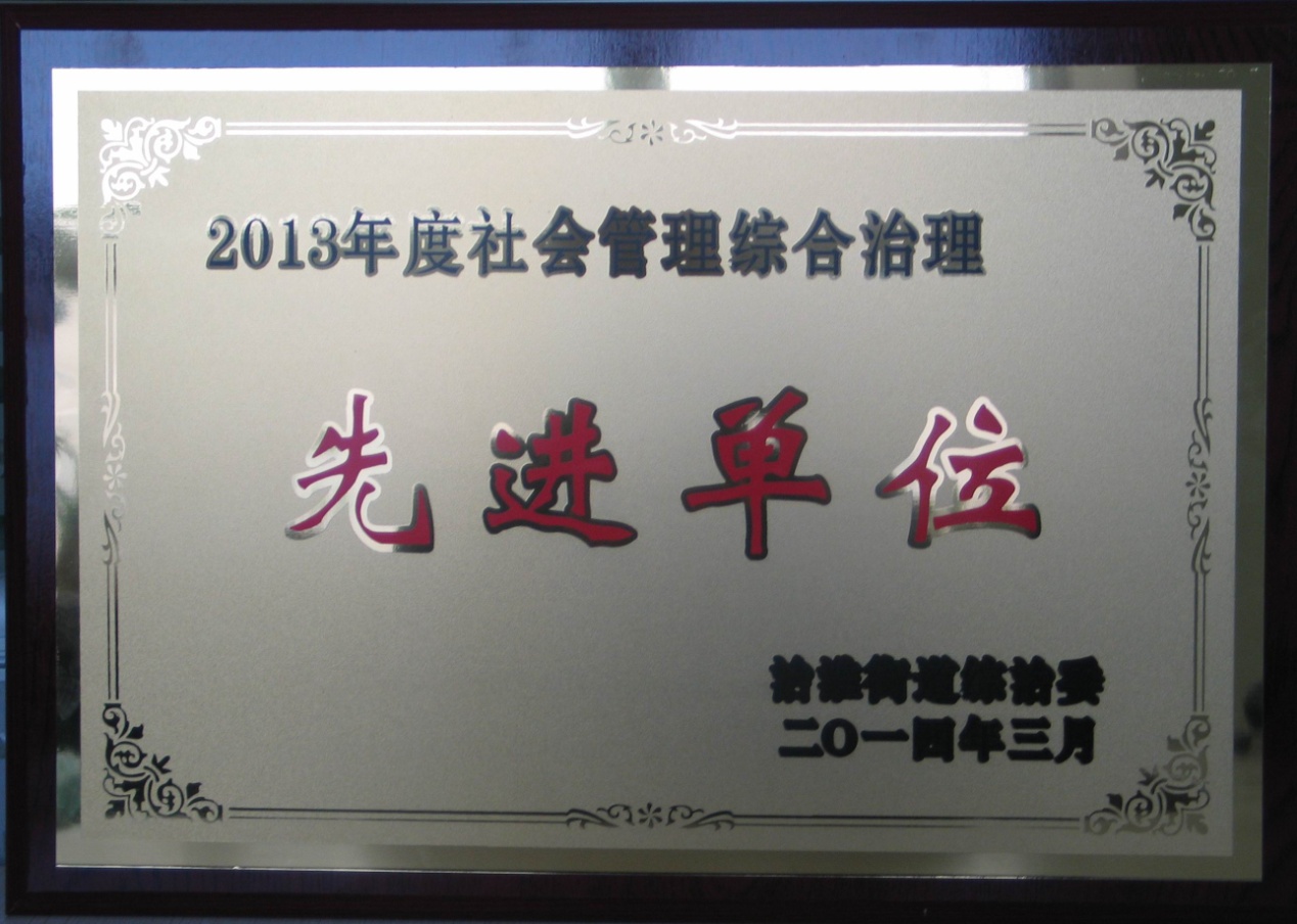我公司等四家單位被評(píng)為2013年度社會(huì)管理綜合治理先進(jìn)單位。