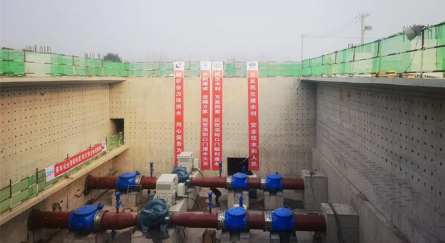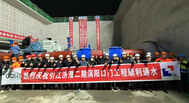 夜以繼日攻堅克難,彰顯中水淮河速度。渦陽水廠分水口門工程工期緊,任務(wù)重,永久用地及臨時用地征遷難度大,工程于10月7日正式開工;10月25日進行首倉砼澆筑(主泵房底板);12月8日完成除主泵房地面以上及副廠房一層以上的全部砼澆筑;12月24日完成全部涉及通水的水機設(shè)備、金屬結(jié)構(gòu)、閥管件、電氣設(shè)備安裝與調(diào)試,全部引水段、輸水段及永久供電線路施工,具備通水條件;12月26日工程順利通水,整體具備長期供水條件;12月27日,正式開始向渦陽地表水廠供水。安徽省水利廳就該工程年底通水目標進行確認后,公司黨委及領(lǐng)導高度重視,各部門、各專業(yè)派駐人員急現(xiàn)場之所急,解現(xiàn)場之所需,項目部及各參建單位錨定目標、爭分奪秒,上下聯(lián)動全力保障既定目標節(jié)點實現(xiàn)。
