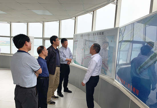15日上午,胡春宏院士一行在淮河水利委員會(huì)副主任顧洪和我公司副總經(jīng)理何華松陪同下,赴淮河蚌埠閘了解有關(guān)情況,安徽省淮河河道管理局魏獻(xiàn)玉書記詳細(xì)介紹了淮河蚌埠閘建成60余年以來運(yùn)行管理情況,顧洪副主任結(jié)合淮河防洪骨干工程調(diào)度向胡春宏院士一行介紹了淮河多年來的水情、工情、防洪布局。隨后胡春宏院士一行赴荊山湖行洪區(qū)進(jìn)洪閘調(diào)研,詳細(xì)了解了2003年荊山湖行洪區(qū)爆破行洪的情況及爆破口門建閘控制后的調(diào)度運(yùn)行情況。下午,胡春宏院士一行登涂山觀淮河河勢(shì),淮河水利委員會(huì)副主任顧洪和公司副總經(jīng)理何華松向胡春宏院士介紹治淮中國(guó)數(shù)千年治淮歷史,深入探討治淮經(jīng)驗(yàn)、成就與教訓(xùn)。