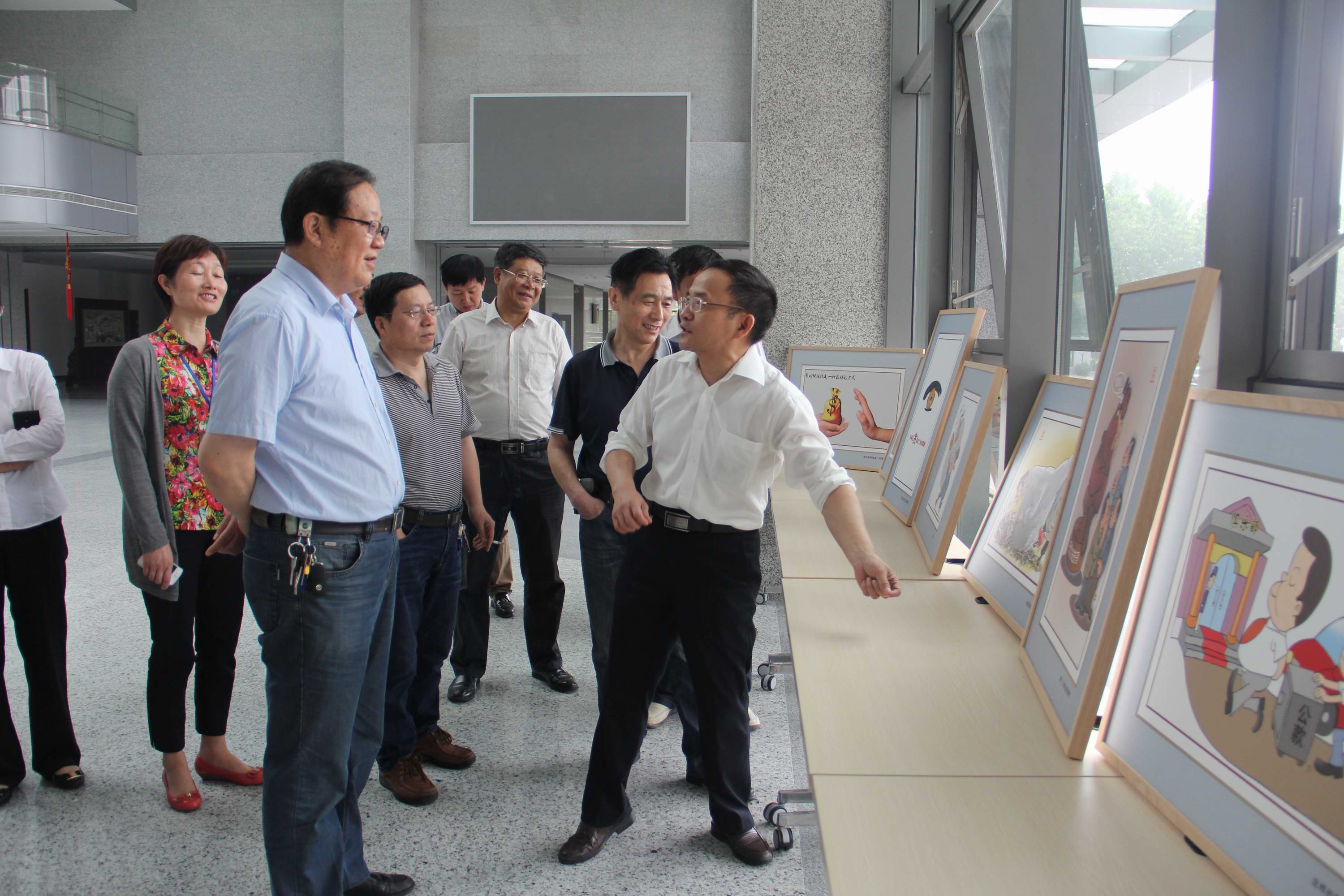 根據(jù)淮委的安排,公司于5月18日至22日期間在(合肥)淮河科研中心一樓大廳組織開展“清廉水利漫畫展”巡展活動(dòng)。5月19日,公司董事長(zhǎng)、黨委書記萬(wàn)隆帶領(lǐng)公司領(lǐng)導(dǎo)班子、黨委、紀(jì)委部分成員和各部門主要負(fù)責(zé)人等近20人參觀了展覽。