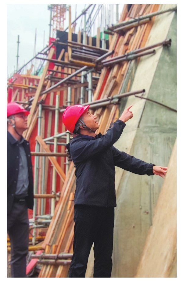 趙永剛(右)在指導(dǎo)工程施工 本報(bào)通訊員 史瑋 攝