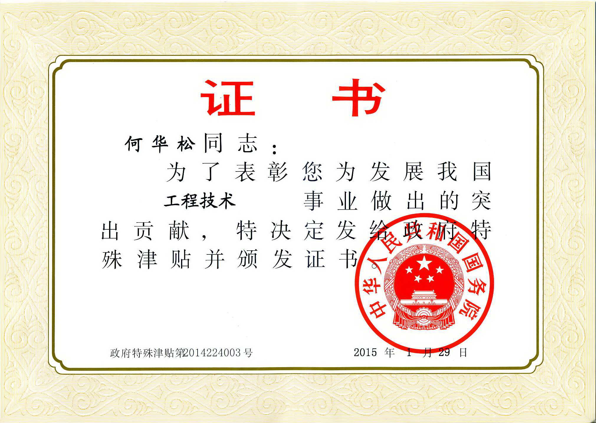 2015年1月19日,國(guó)務(wù)院總理李克強(qiáng)主持召開(kāi)國(guó)務(wù)院常務(wù)會(huì)議,批準(zhǔn)了2014年享受政府特殊津貼人員名單。我公司副總經(jīng)理何華松獲此殊榮。
