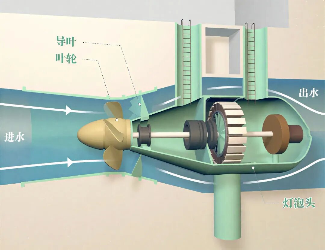 傳統(tǒng)軸流泵低揚(yáng)程大流量復(fù)雜工況下泵站效率低下、結(jié)構(gòu)單一的問(wèn)題,是工程設(shè)計(jì)階段的主要技術(shù)瓶頸。項(xiàng)目負(fù)責(zé)人沈繼華帶領(lǐng)設(shè)計(jì)團(tuán)隊(duì)通過(guò)對(duì)水泵機(jī)組的技術(shù)研究,突破傳統(tǒng)軸流泵低效桎梏,首次在國(guó)內(nèi)引入大型行星齒聯(lián)燈泡貫流泵技術(shù),成功突破了國(guó)內(nèi)(特)低揚(yáng)程、大流量泵站水泵機(jī)組選型的難題。該技術(shù)可將水泵與電動(dòng)機(jī)采用行星齒輪箱連接減速傳動(dòng),并布置在貫流泵燈泡體內(nèi),形成平直流道,使水流無(wú)需轉(zhuǎn)向即可高效通過(guò),能量轉(zhuǎn)換效率達(dá)81%,遠(yuǎn)超傳統(tǒng)機(jī)組的65%~70%。為驗(yàn)證這一技術(shù)的可行性,中水淮河公司積極與高校開(kāi)展聯(lián)合研究,采用先進(jìn)技術(shù)、三維建模與計(jì)算流體動(dòng)力學(xué)(CFD)數(shù)值模擬技術(shù),對(duì)泵體結(jié)構(gòu)、葉片角度及流道形態(tài)進(jìn)行多輪優(yōu)化。通過(guò)模擬分析,設(shè)計(jì)團(tuán)隊(duì)精準(zhǔn)預(yù)測(cè)了水流擾動(dòng)與壓力分布,最終確定葉輪直徑2.85米、機(jī)組正交布置的最優(yōu)方案,既保障了運(yùn)行穩(wěn)定性,又顯著降低了水力損失。