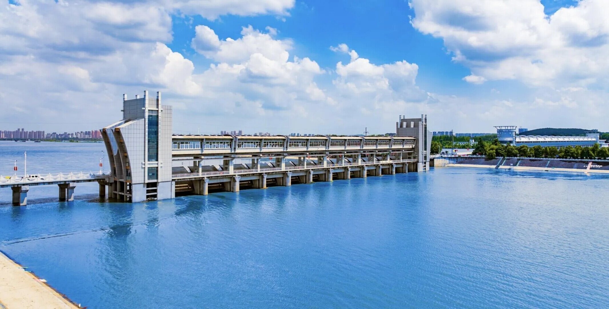 蚌埠閘位于淮河中游,橫跨安徽省蚌埠市禹會與淮上兩區(qū),閘上流域面積12.1萬平方公里,是一座大(1)型水利樞紐工程。工程始建于1958年,1962年基本建成,經(jīng)60多年的不斷建設(shè)和發(fā)展,現(xiàn)由28孔節(jié)制閘、12孔節(jié)制閘、老船閘、擴建船閘、水力發(fā)電站、分洪道、3.37km堤防組成,具有防洪、蓄水灌溉、航運、發(fā)電、城市供水等綜合效益。樞紐工程設(shè)計洪水位閘上23.22m,閘下23.10m,設(shè)計流量13090m3/s。